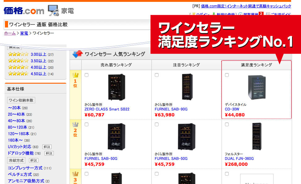 ▼価格.COMマガジン ワインセラー 通販 価格比較(リンク先)