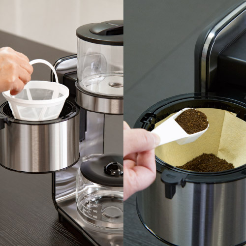 「パーマネントフィルター」何度も使えるメッシュフィルター付属。ペーパーフィルターも使えます。