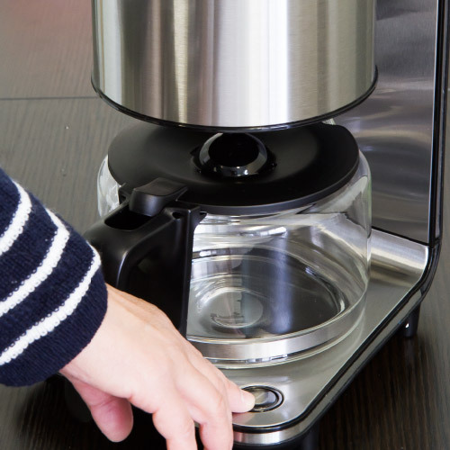 お湯の温度が約95℃に達した時点で抽出が始まり、10杯分のコーヒーであれば一般的に適正だと言われる速度である約6分強のスピードで抽出し終わり、理想的なコーヒーが仕上がります。