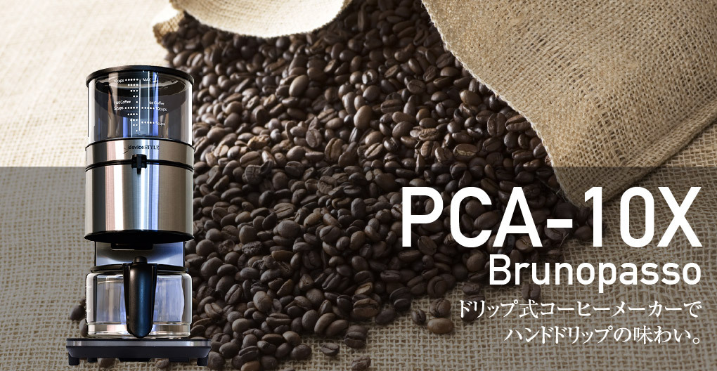 Brunopasso PCA-10Xは、ハンドドリップの味わいの実現を目指すべく、従来のドリップ式コーヒーメーカーの基本動作を根本的に見直したハイスペック構造でありながら、誰もが購入しやすい普及価格帯での製品化を初めて実現した、全く新しいコーヒーメーカーです。