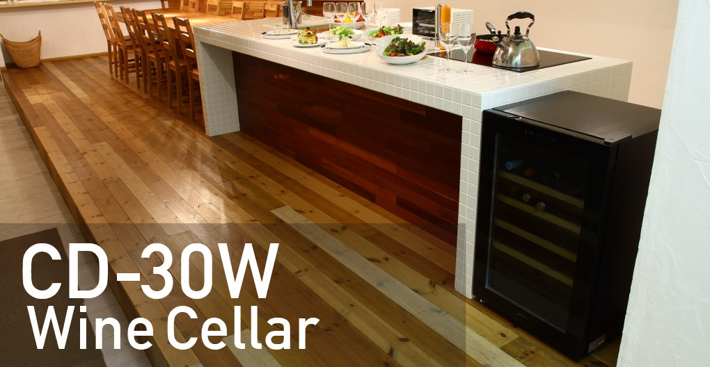 『CD-30W』は冷却装置にコンプレッサーを使用しているため強い冷却力を持ち、また92L/最大33本収納(※)という広い庫内を実現する一方で、幅513mm/奥行き498mmとコンパクトで設置性にも優れています。