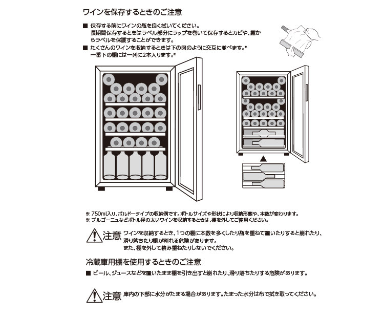 ● ワインボトルが、がたつきがないように正しく収納されていますか?