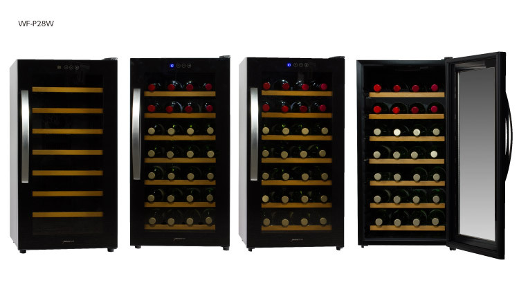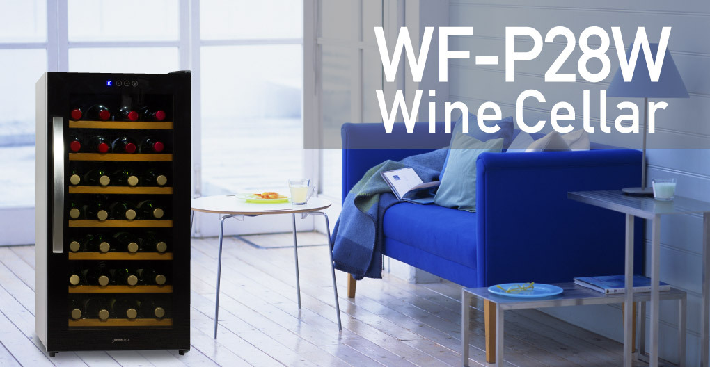 『WF-P28W』は、日本メーカー製の高信頼性ペルチェ素子を使用した冷却ユニットを2基を搭載した28本のワインが収納可能な大容量ワインセラーです。